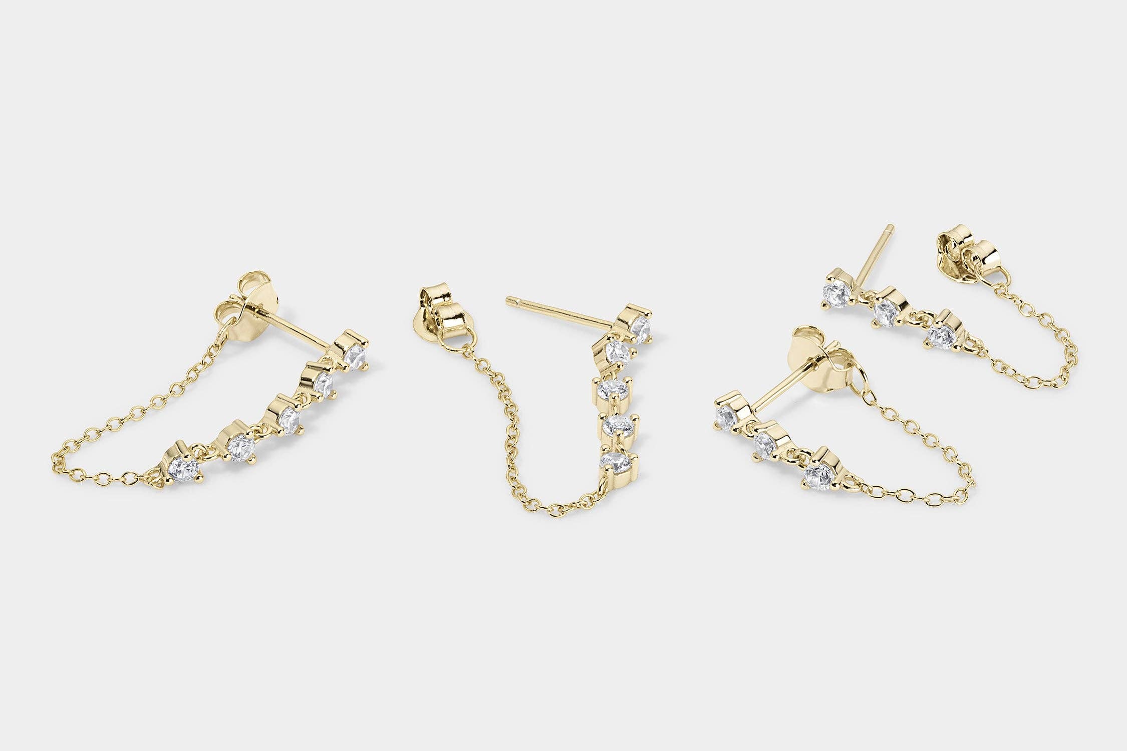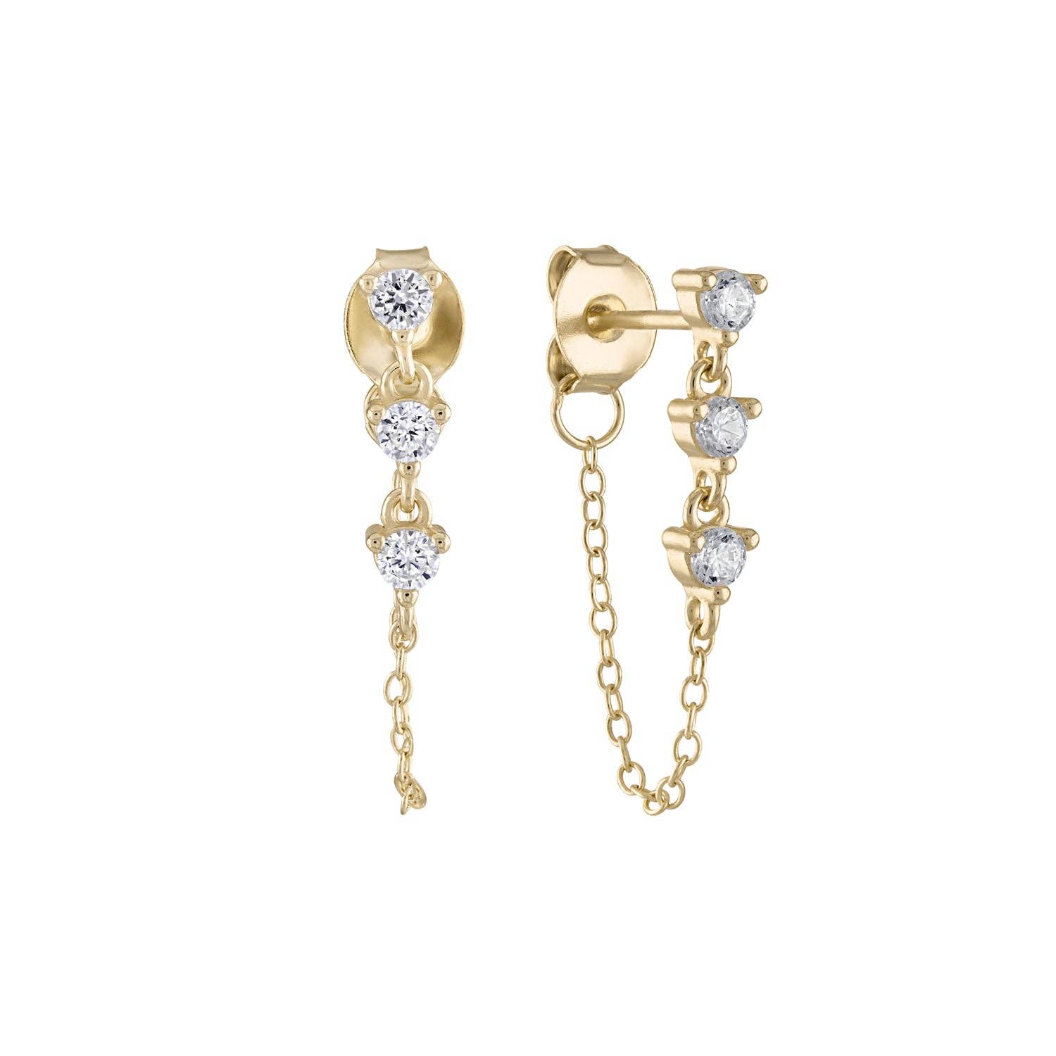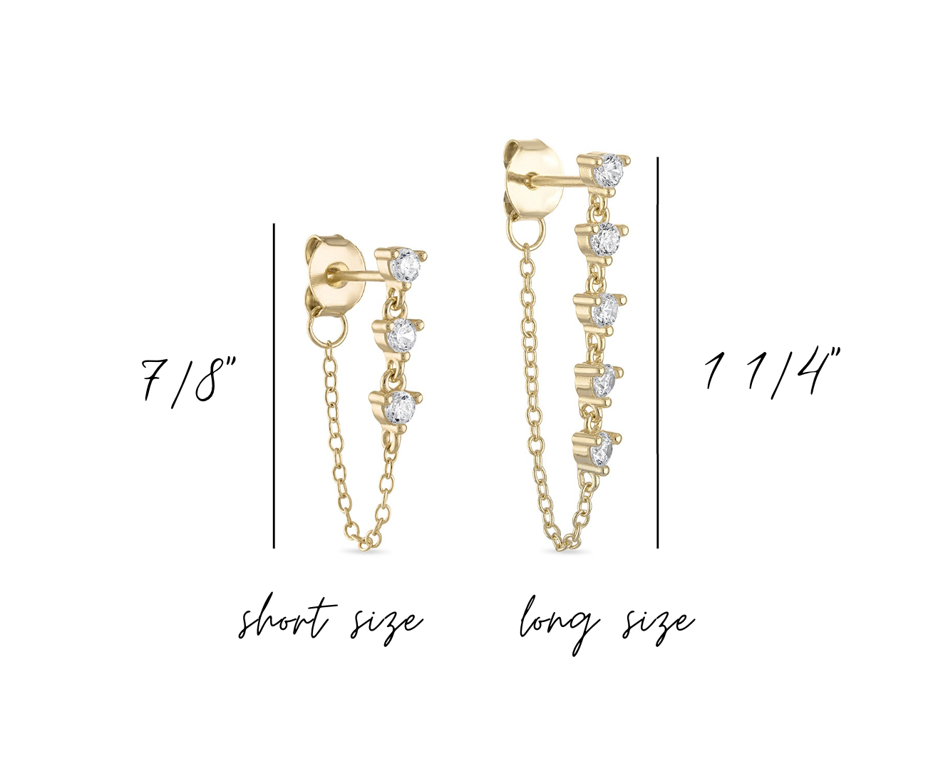 14k Vermeil CZ Dangle Chain Stud Earrings- Mini