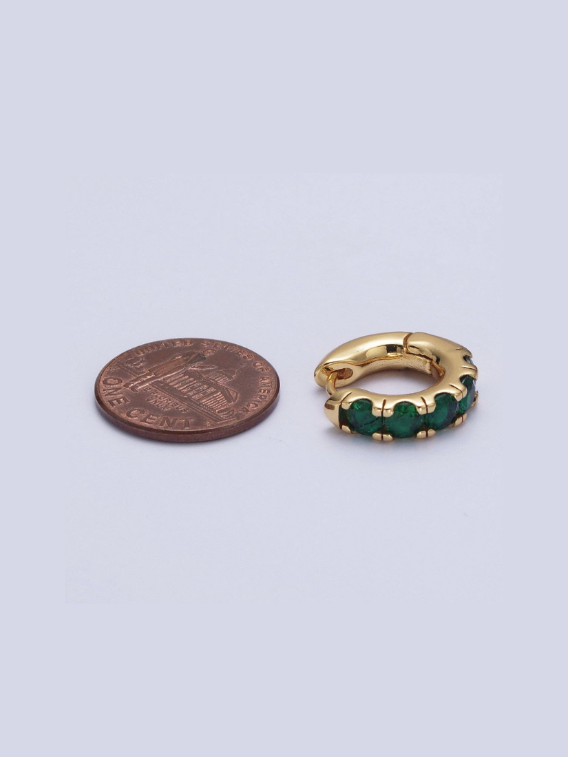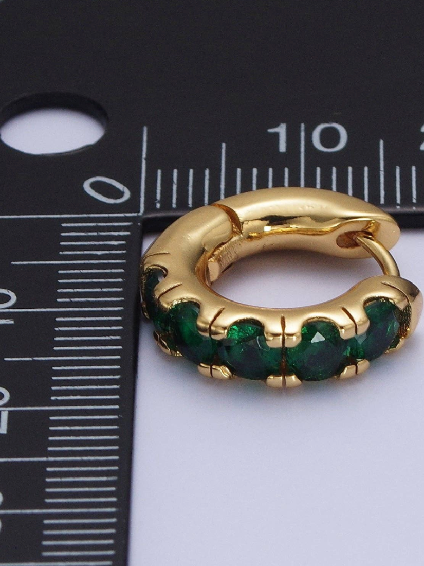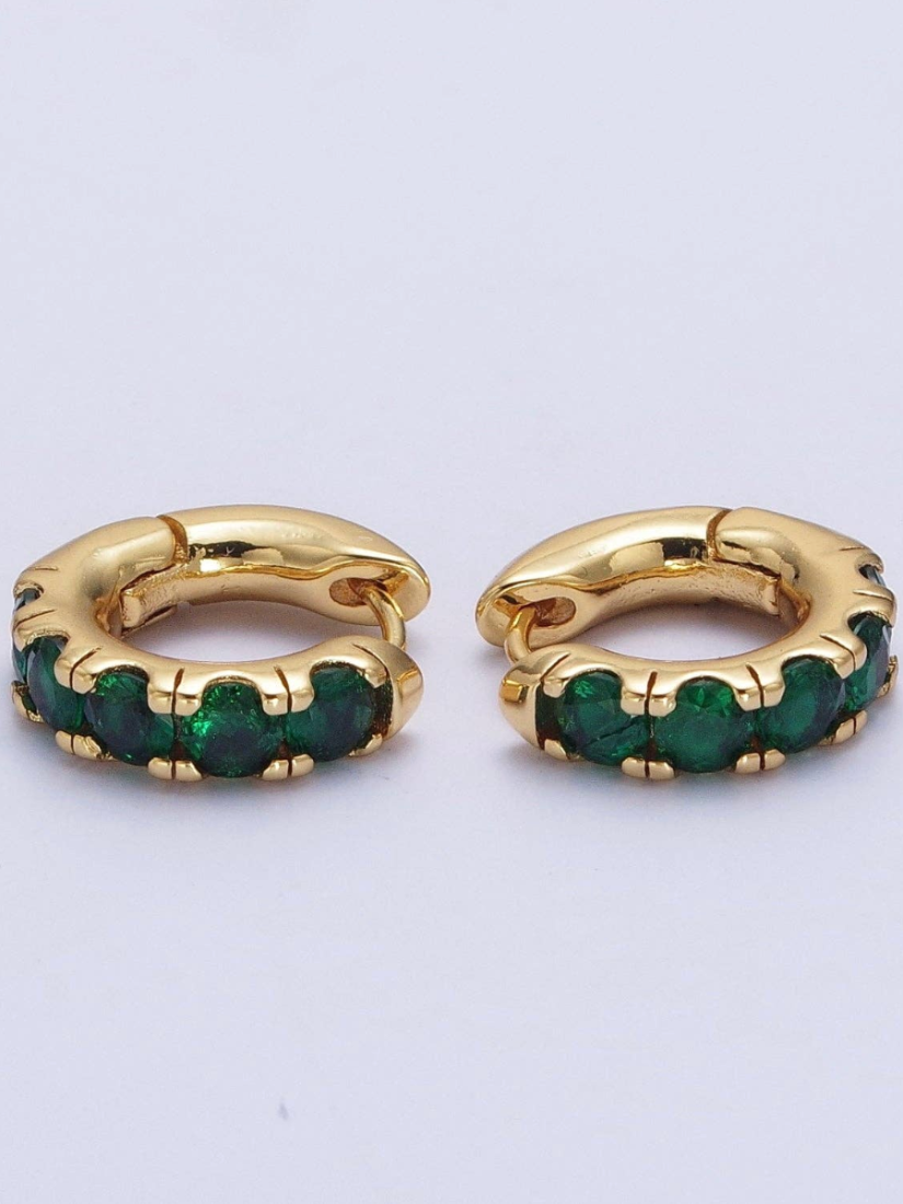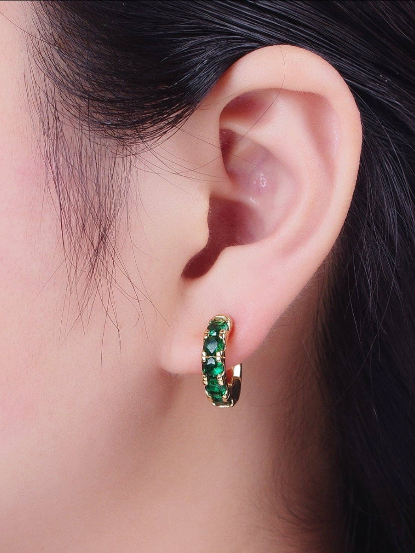 Small in size, bold in color. These gold huggie hoops feature a stunning row of green emerald stones, adding a rich, vibrant touch to any look. Designed for a close, comfortable fit, they're perfect for everyday wear—whether worn alone or stacked for extra sparkle.