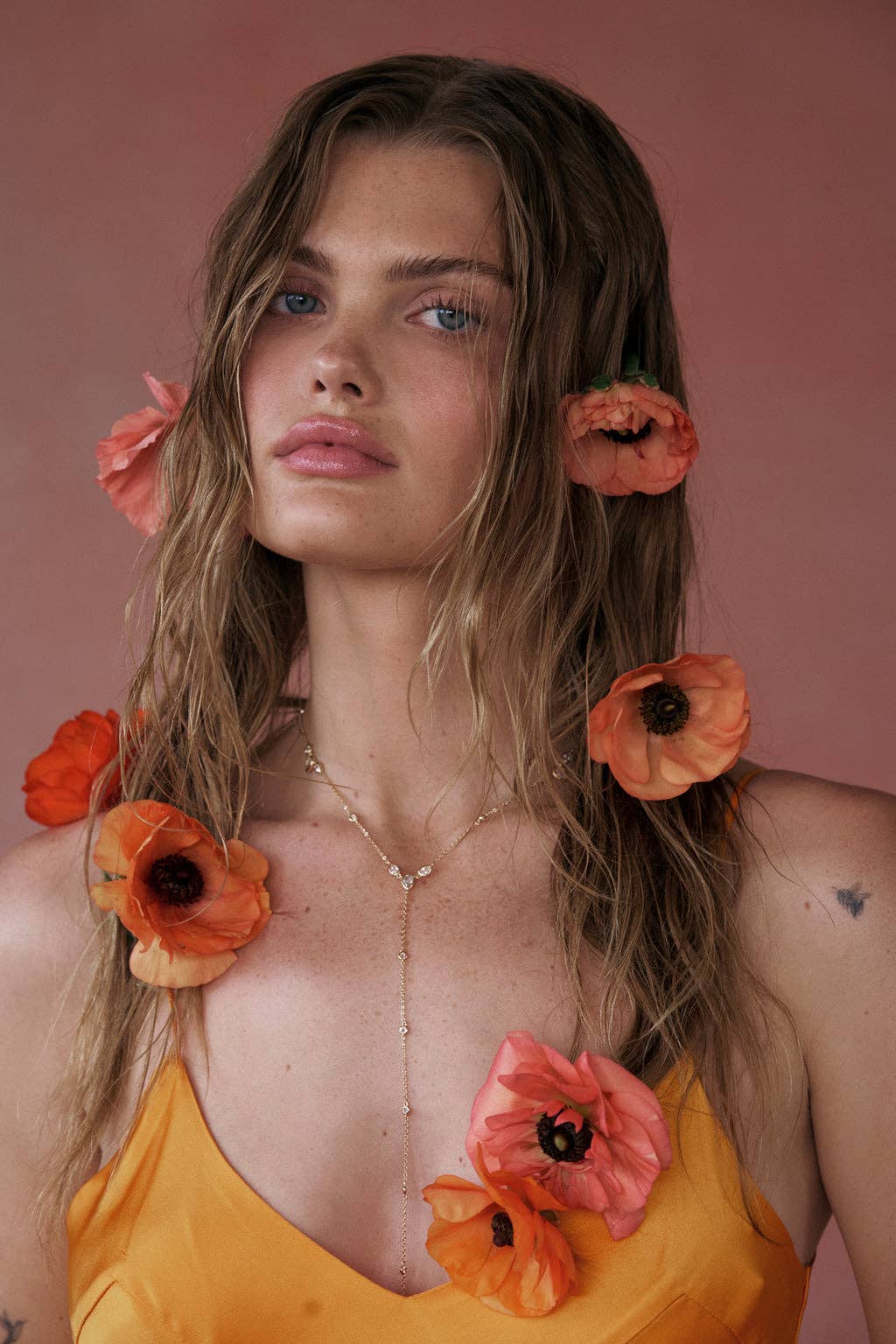 Necklace measures 16" with jump rings at 17" and 18" for an extended wear