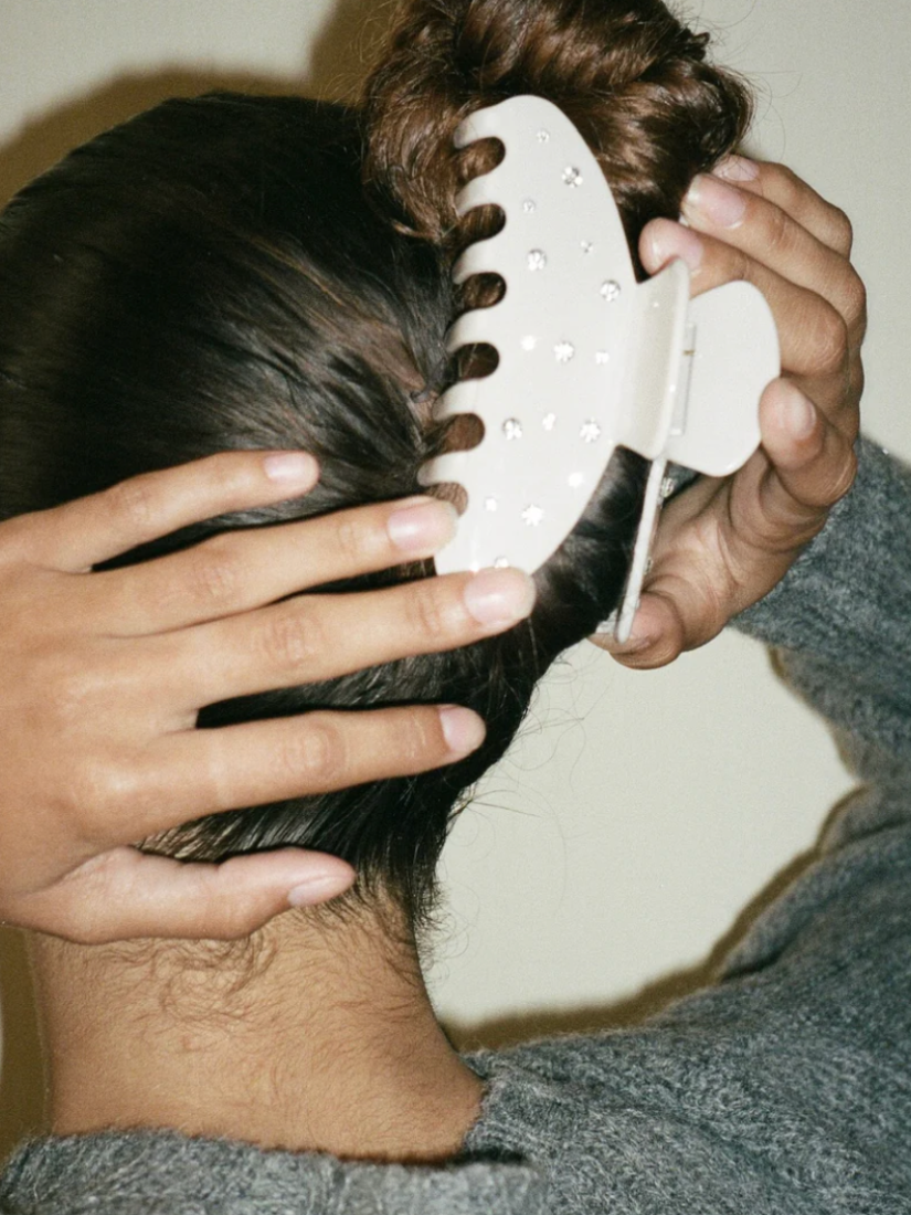 Our most-loved claw clip. Big enough to hold a full head of hair and functional enough to wear from morning to night. No pull, no headache, just good hair. Use this hair clip on dry or wet hair.