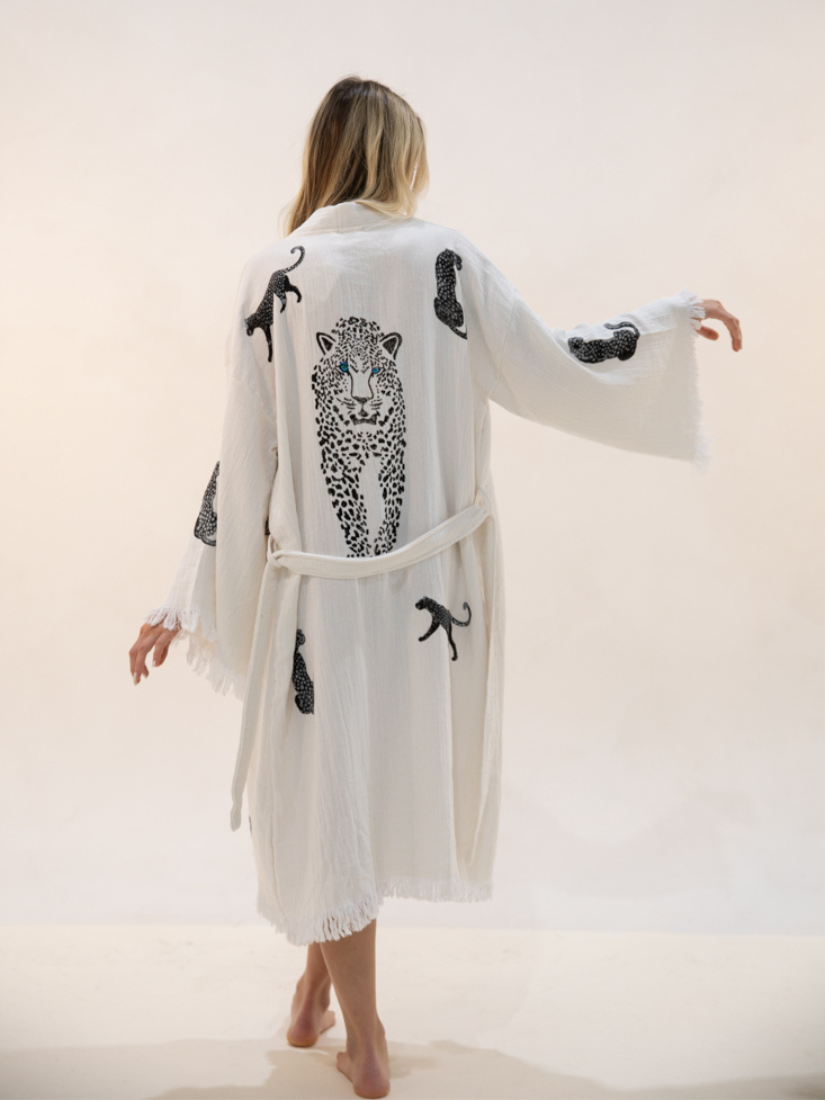 Stay trendy and comfortable with the Tiger Kaftan Kimono Made from 100% organic cottonquality organic cotton. Featuring a beautifully hand-printed tiger design, this kaftan exudes elegance and is the perfect addition to your summer wardrobe. Whether you're spending the day at the beach, picnicking in the park, or just lounging at home.