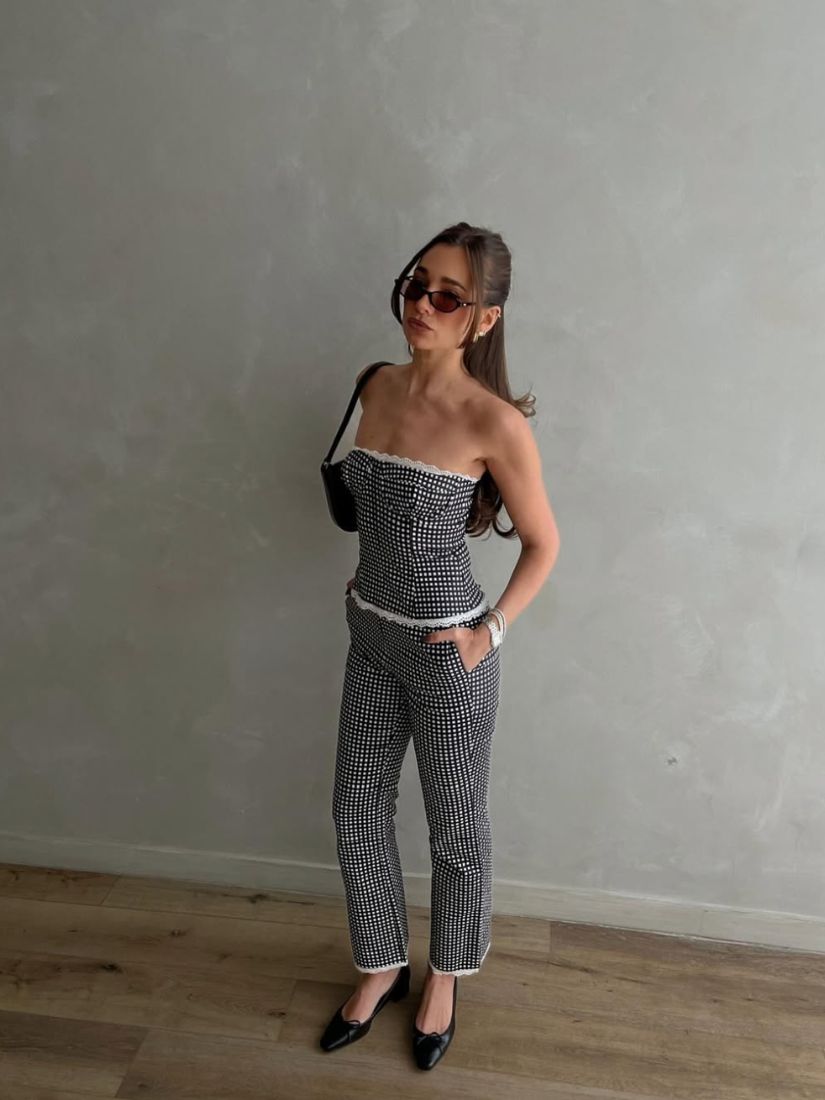 Crop Straight Pant Black Gingham