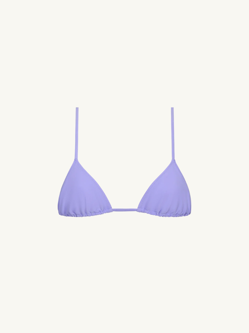 a classic triangle top with string straps that tie at back. the fixed shoulder straps and cups can be adjusted along the drawstring to find your perfect fit, or can be detached and tied at the neck