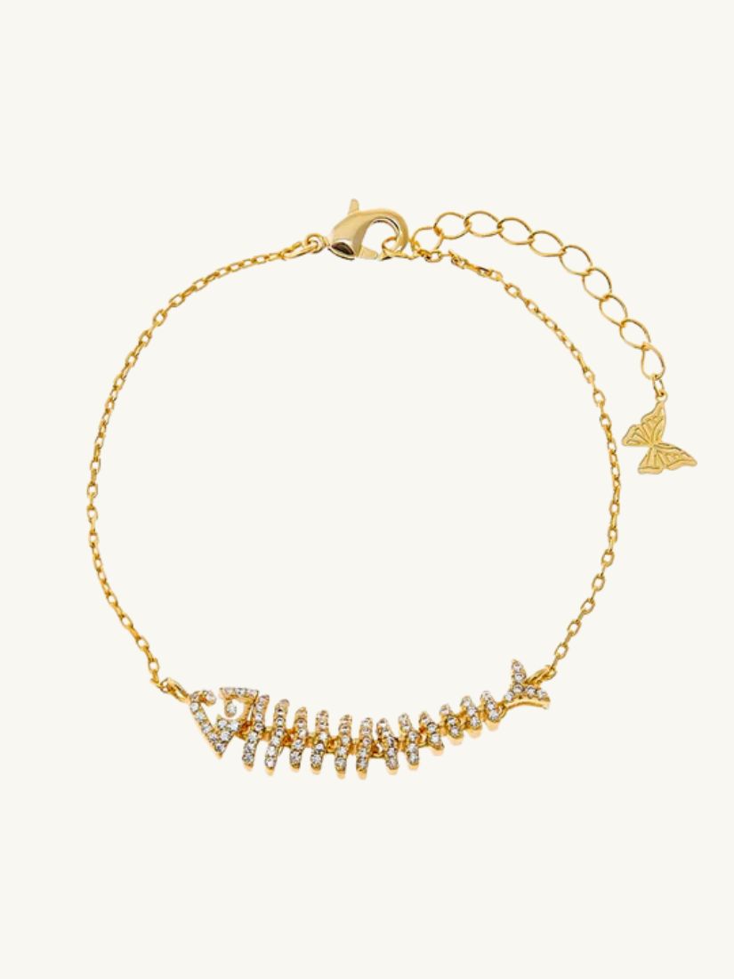 Say yes to sparkle with the Fishbone Chain Bracelet by Adina Eden, a Bracelet made to shine all day. This bracelet for women with charms is your new go-to accent, available in Gold to suit your layers.