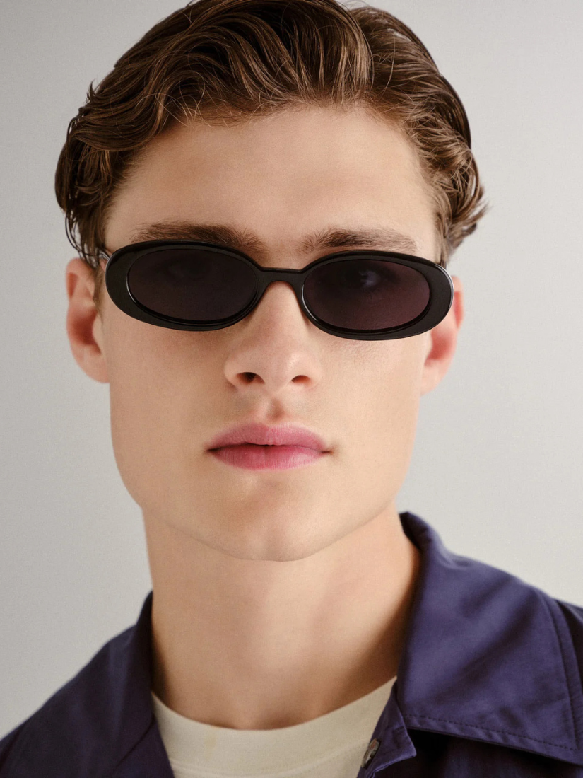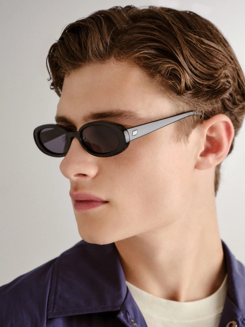 Exuding '90s confidence, our iconic OUTTA LOVE silhouette offers a minimal nineties look. This petite, slimline oval silhouette features a modern flat profile and signature Le Specs gold metal hardware, and is just the right size to complement your face without hiding your best features.