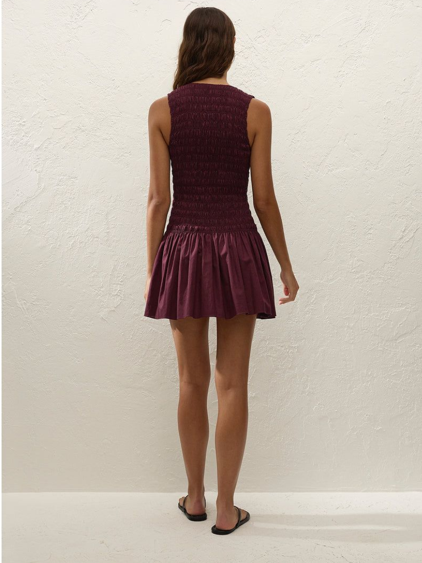 Elegant Palomar Mini Dress in Mulberry by Faithfull The Brand, perfect for day-to-night wear.