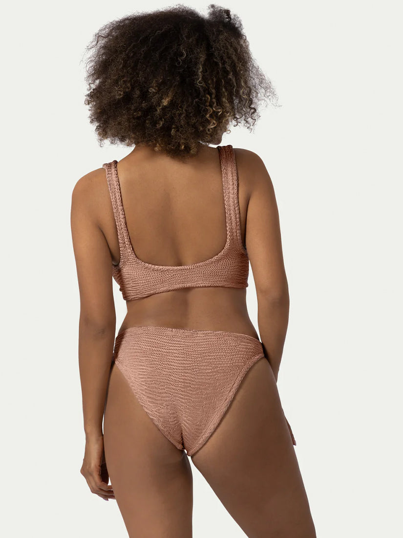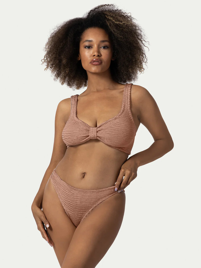 Elegant two-piece swimsuit in rose beige, crafted from ultra-stretchable 97% polyamide and 3% elastane for a flexible, flattering fit.
