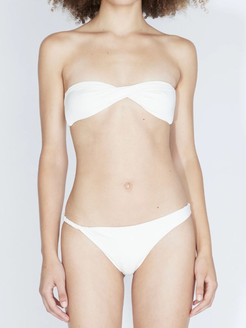 A fresh take on the classic bottom. The Twisted Bottom, a classic silhouette with a single-sided twist that can be worn higher or lower on the hip.